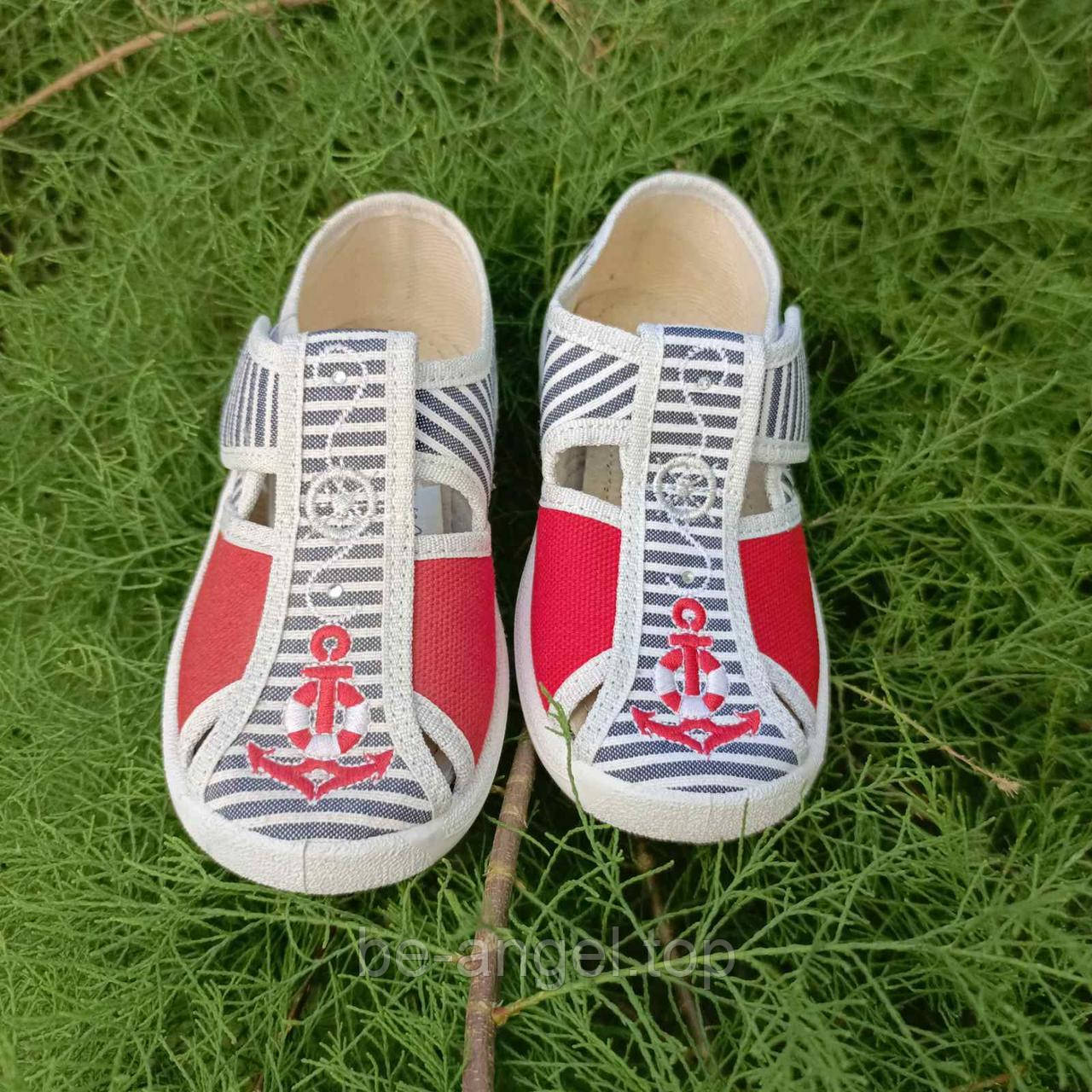 Мокасини дитячі "Маша" синя смужка з червоним якорем