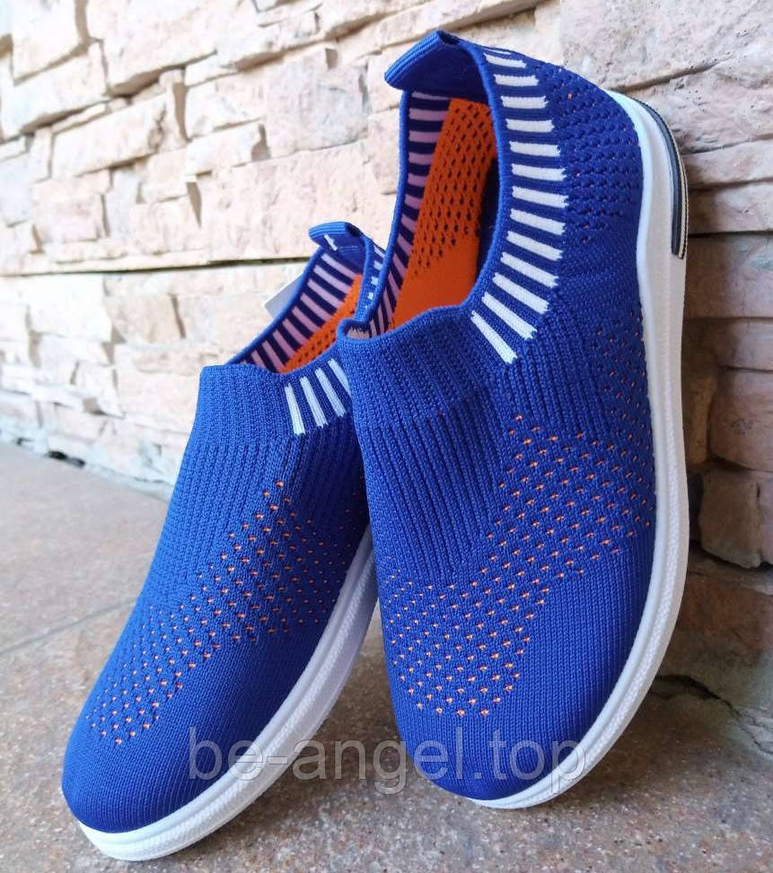 Мокасини текстиль сині з оранжевим Sapphire blue A320-1-2